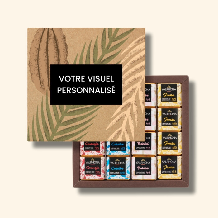 Coffret 32 carrés de chocolat noir et lait personnalisable