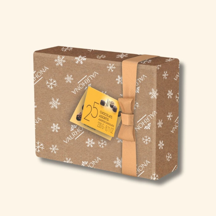 - 25 chocolats fins de 8 variétés : pralinés, ganaches, orangettes édition Noël 2025