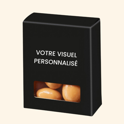 Vous avez la liberté de choisir la couleur de l'emballage, d'ajouter votre logo, ou de créer un message personnalisé. De plus, il est possible de sélectionner l'aluminium qui enveloppe votre chocolat afin de l'harmoniser avec le reste de votre personnalisation, garantissant une présentation cohérente et élégante.