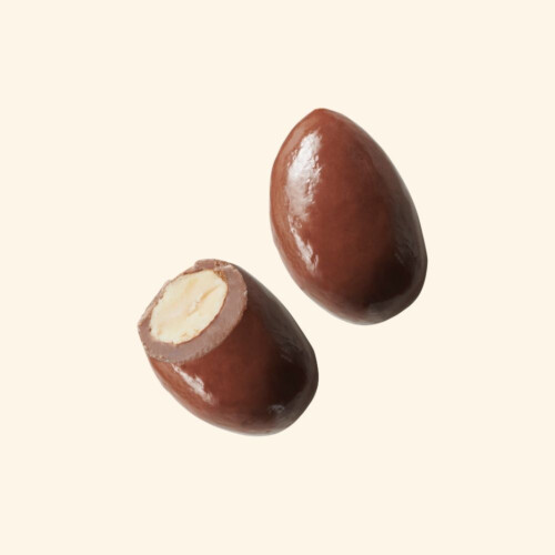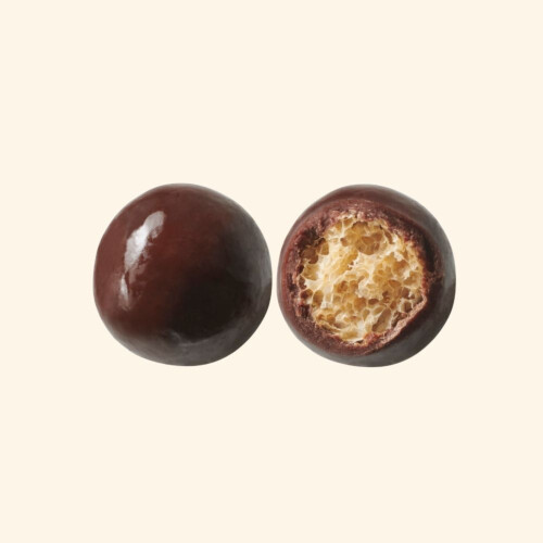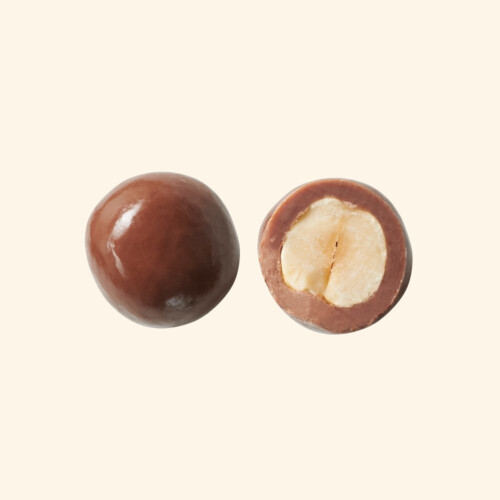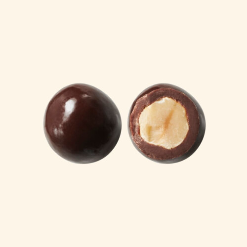 Amandes et noisettes enrobées de chocolat au lait (40% de cacao minimum) ou de chocolat noir (55% de cacao minimum) et céréales maltées croustillantes enrobées de chocolat noir (55% de cacao minimum) ou de chocolat au lait (36% de cacao minimum).