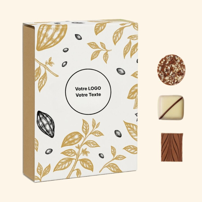 Coffret 15 bonbons de chocolat avec fourreau personnalisable