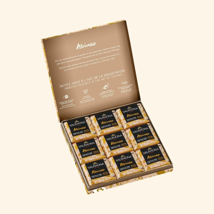 - 18 carrés de chocolat noir Abinao 85%, aux notes amères et boisées
