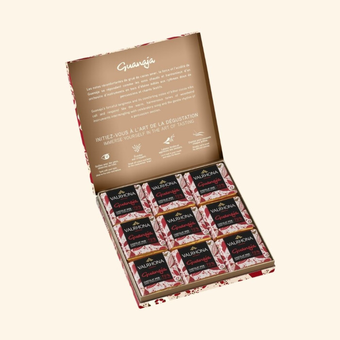 - 18 carrés de chocolat noir Guanaja 70%, aux notes équilibrées et grillées