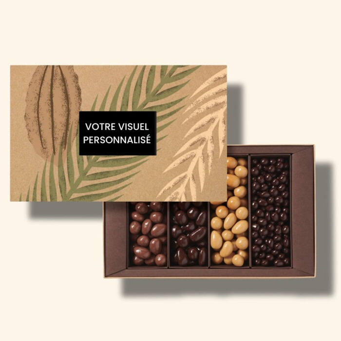 Coffret amandes, noisettes et orangettes enrobées personnalisable