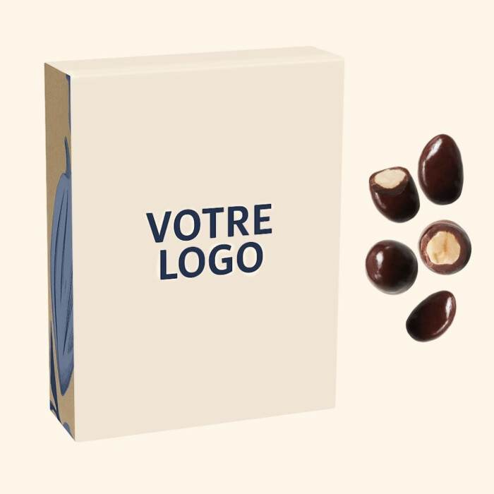 Coffret amandes et noisettes enrobées avec fourreau personnalisable