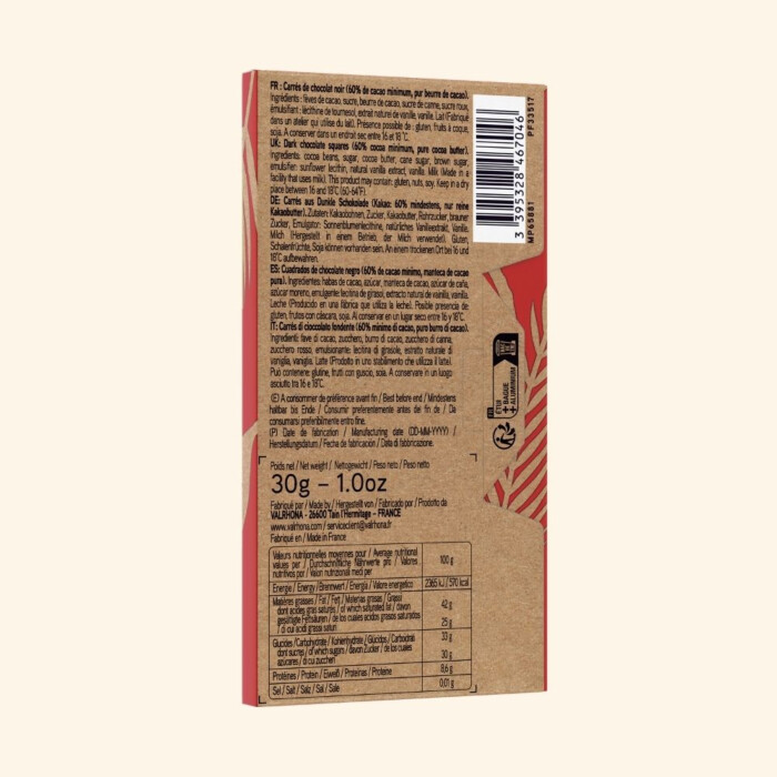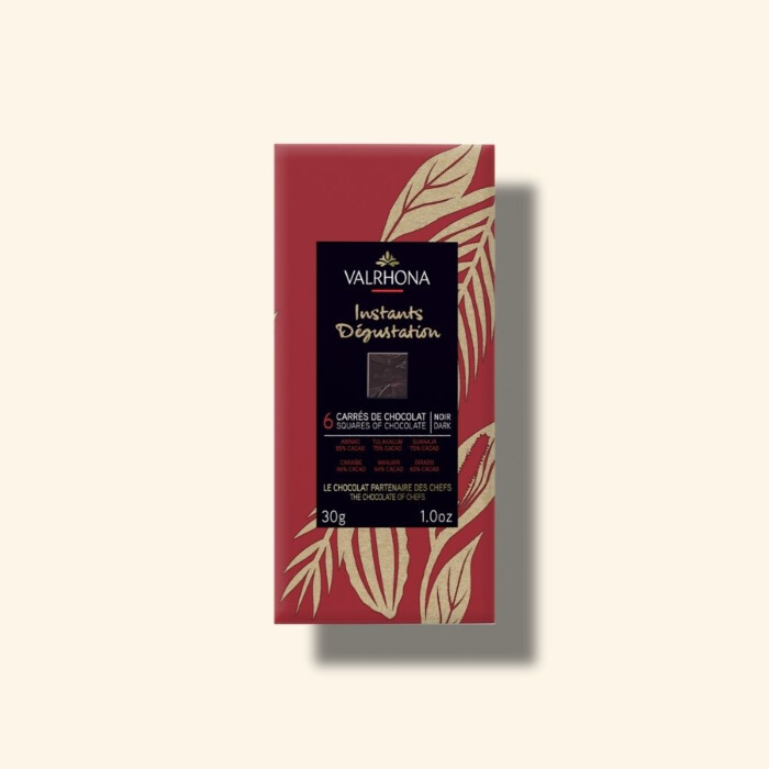 - Carrés de chocolat noir (60% de cacao minimum, pur beurre de cacao).