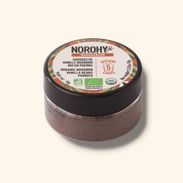 Pot de poudre de gousses de vanille biologique de Madagascar