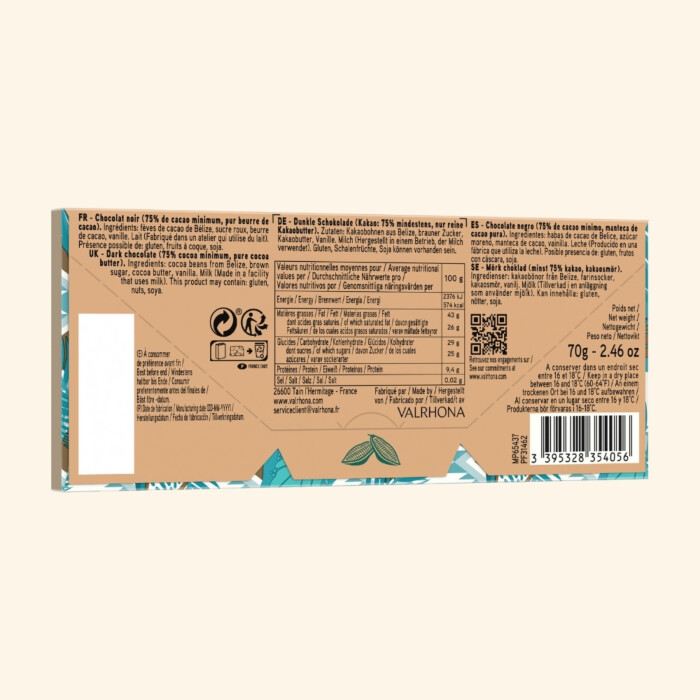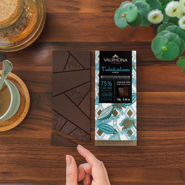 - Tablette aux notes fruitées, acidulées et de grué de cacao